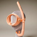 • Attach snorkel to your dive mask by threading the strap thru the clip (attached to snorkel) and position in place. Readjust, by sliding clip placement on snorkel to fit.