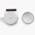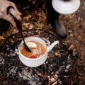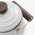 A high-quality statement piece for your camp kit or home kitchen. Perfect for efficiently heating water for camp coffee, tea, hot chocolate, and more. The Vintage-inspired Teapot boasts a hand-finished, baked stainless steel rim that produces a rich copper-like patina finish and complements the eggshell enamelware.