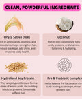 - Oryza Sativa (Rice): Rich in amino acids, vitamins, and antioxidants. Helps strengthen hair, reduce breakage, add shine, and improves scalp health.