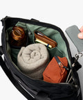 Nothing’s lost in the abyss with a wide zipper that extends past the opening, and a quick-access rear pocket for the essentials.