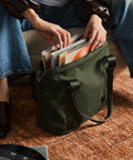 Classic Zip Tote is made of: 80% Recycled Polyester, 10% Nylon, 5% Other materials, 5% Leather