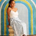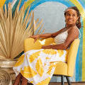Handprinted "sulu," a sarong, brings a splash of colour and handmade design to your beach attire. Multi-purpose, great for a pop-up picnic, beach blanket for breezy naps, and more.