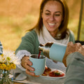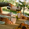Designed to hold a full wine bottle, the robust, vacuum-insulated flask maintains your wine's ideal temperature for up to 24 hours. Whether it’s crisp rosé on a sunny afternoon or rich red by a campfire, taste is paramount. That's why both flask and tumblers feature electropolished, sommelier-grade stainless steel interiors, ensuring zero flavor transfer – just pure, intended character in every sip.