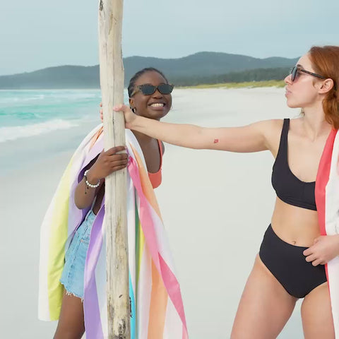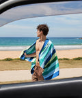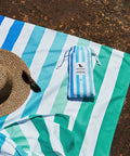 Extra large yet easy to pack, your new favourite beach towel is made from 100% recycled post-consumer plastic and certified by B Corp standards - ready for your next swim, sunbathe, and seaside escape.