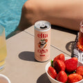 Purified Sparkling Water, Agave Syrup, Natural Flavours (Peach, Sparkling Wine), Elta Ego™ Bioactive Adaptogen Blend (Red Maca Extract, Panax Ginseng Extract, L-Theanine), Acidity Regulators (Tartaric Acid, Sodium Citrate, Malic Acid, Citric Acid), Natural Sweetener (Monk Fruit Juice Concentrate), Natural Colour (Carrot Juice Concentrate), Tannins, Antioxidant (Ascorbic Acid).