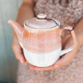 Handmade and unique, this teapot has an excellent pouring experience with a large handle and secure macramé cord lid attachment. The Hansel teapot will be a treasured piece of pottery in your home for years to come.