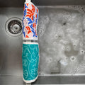 Durable enough for over 200+ repeated machine washes, or top rack of your dishwasher, they are printed with water based inks and are fully home compostable. Each cloth will last you 9-12 months. To cleanse, simply microwave wet for 40 seconds.